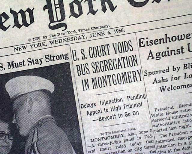 Noted as the "one before Rosa Parks", Colvin, aged 15 and pregnant, was arraigned after refusing to give her seat away to a white woman on a segregated bus, but her representation did not align with Black civic leaders' agenda setting against bus segregation. On November 13, 1956, the Supreme Court upheld Browder v. Gayle where Colvin was a plaintiff and legally ended racial discrimination on public transportation and the busing system.